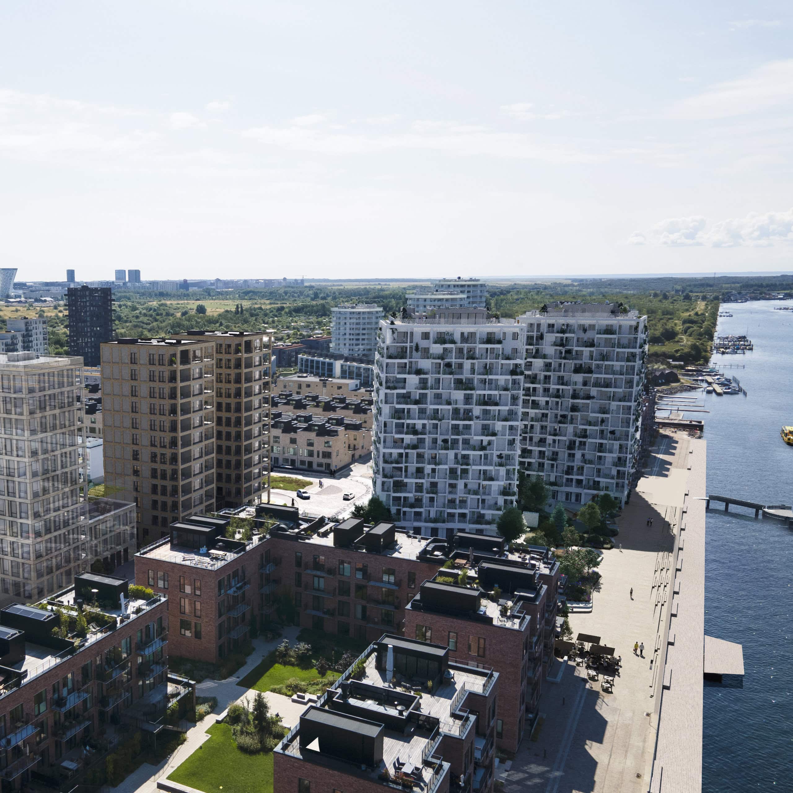 Henning Larsen Architects har tegnet hele stedet og de 2 tårne med en enestående udsigt til Fælleden, vandet og byen. Det er et sted, hvor du kan bo lige ved Københavns havn og Bryggens Centrale Plads. Et sted, hvor der er masser af ro, plads og lys. For selvom du er lige midt i alle Bryggens muligheder og tæt på Københavns liv, er byen overraskende stille netop her.